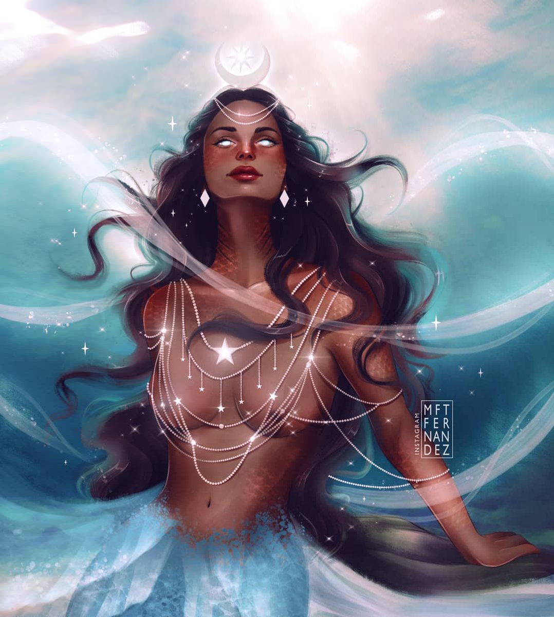 Sereia do mar ✧ Yèyé omo ejá ✧ Janaína ✧ Princesa de Aiocá ✧ Marabô ✧ Rainha do mar, ou..... Iemanjá 🧜🏻♀️ A "Afrodite brasileira", e quem decide o destino dos que entram no mar... 💙 🌊 #mermay2020 #mermay #mermaychallenge #wacomart