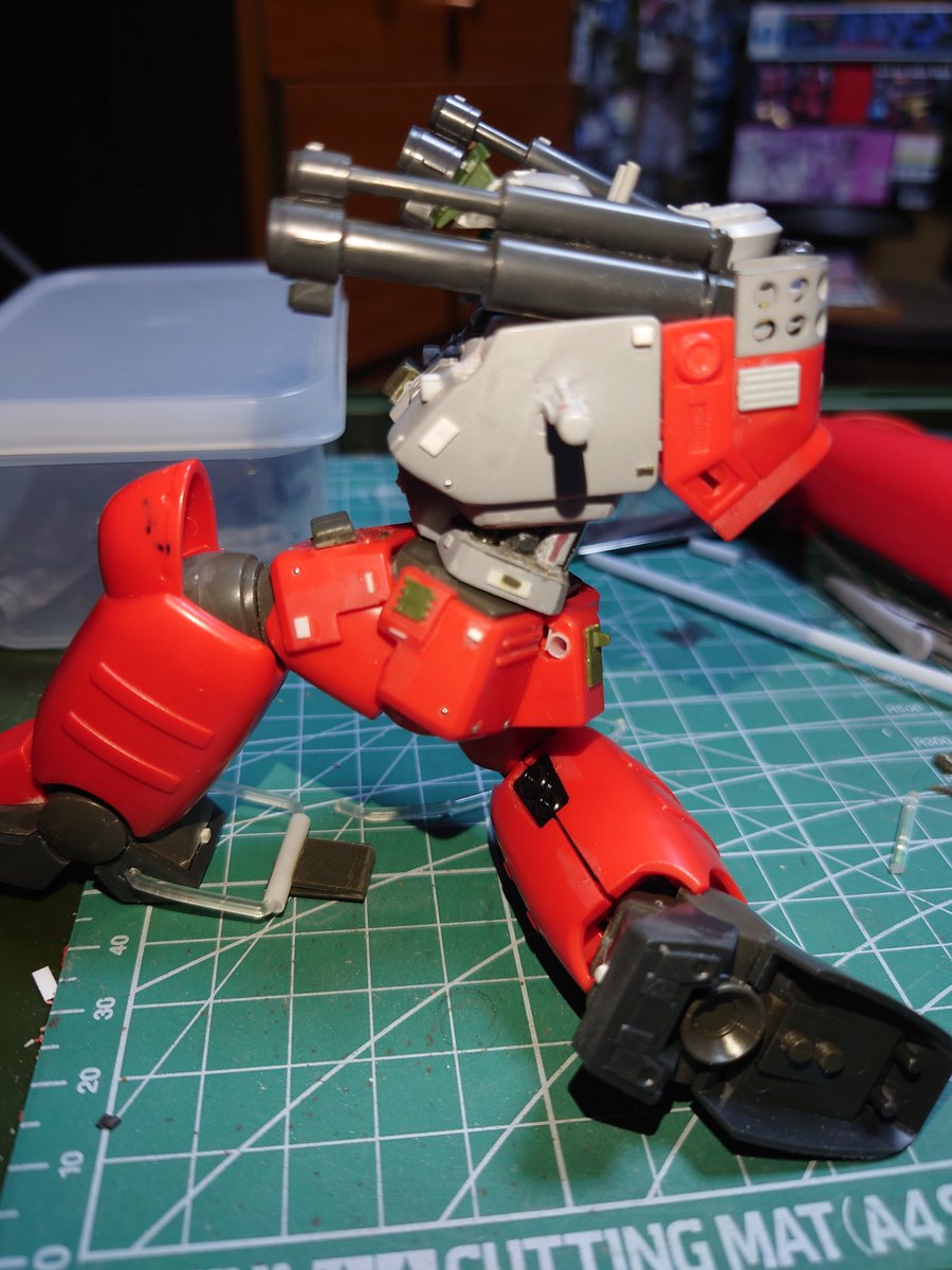 #ガンプラ好きとつながりたい #ガンプラの画像貼るとRTされると聞いて 牛歩製作 備忘録20221028 HG量産型ガンキャノン係長 上半身の基本はOK。バズーカは陸戦型ガンダム地上戦セット付属の物がマッチしそうなのでチョイスアンテナは一回破損したので作り直しですね…なかなかいい感じだと思うがwww