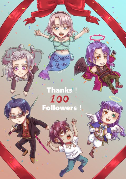 当初の目標だった100人フォロワーさん突破しました、とてもうれしいです😂みなさん日頃どうもありがとうございます!!調子に乗って記念イラスト描きました✨(というか実はちょっと前から描いて待機してました…)