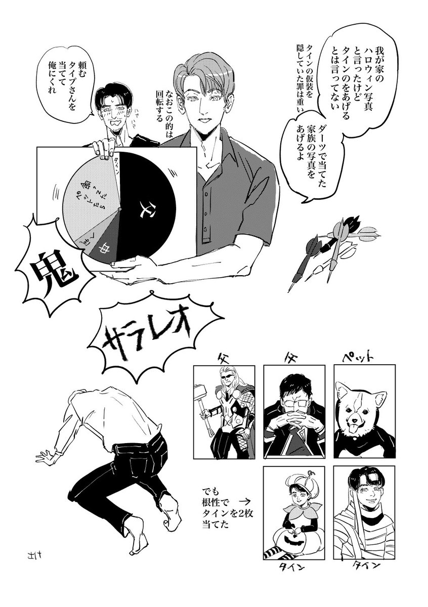 夏祭りManTypeを描くにあたって、ネタ出しをする際どうしても「危険な村の夏祭りに放り込まれて脱出を図る皆さん」の妄想が邪魔をするので、供養いたしました。 #ManType創作 #夏祭りManType #読みたくても読めないManType創作 twitter.com/mgiski_ts/stat…