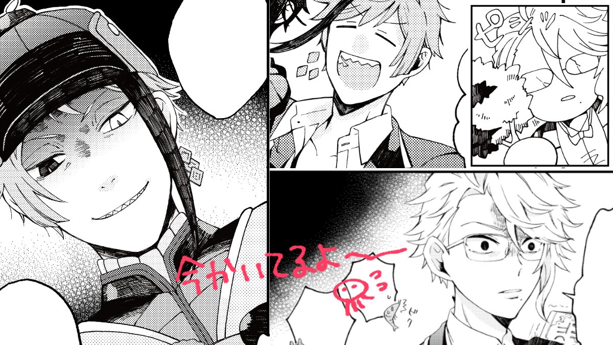 5/25・インテ新刊サンプル(1/2) フロ監♀🦈🦐ほのぼのギャグ #twstプラス
