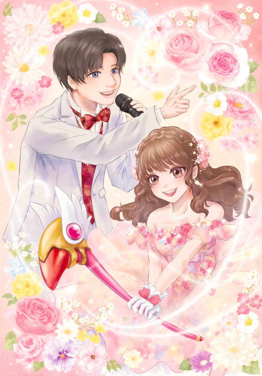今回しゃなちゃんの結婚式のイラストを描かせて頂きました🌸💖 事前にお衣装の写真をもらっていて、でも確定はしていないとのことだったので、そのままの姿で登場してきた時は感動しました🥹✨ 本当におめでとう〜💐🌸🌼💠 twitter.com/shana_626/stat…