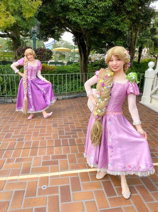 ついにラプに会えました😭😭💗💗💗✨✨✨ ラプが来た瞬間手が震えて泣きそうになってた😭 実は一番好きなプリンセスがラプンツェルなんだけど、今までウィッグに苦戦してて、やっと満足行く仕上がりにできたので本当に嬉しい!!🥹💕 Best day ever!!☀️ #Dハロ仮装2022