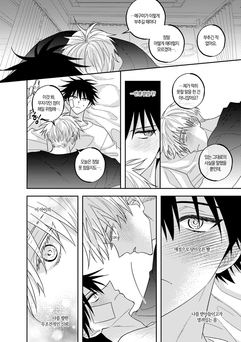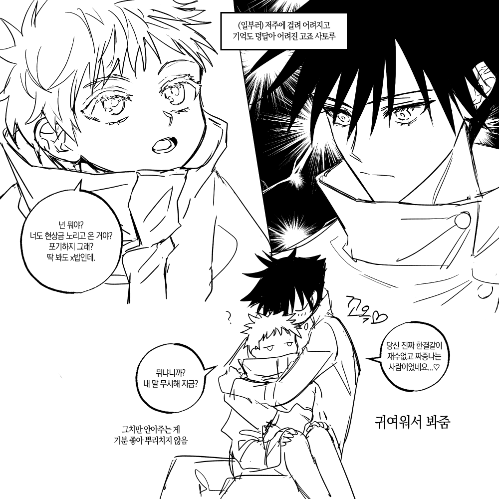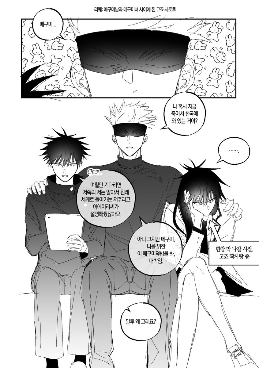 고죠후시 리퀘낛..~ 첫번째는 여름밤 두번째는 메구미랑 처음이라서 긴장하는 사토루..였습니다 너무 제멋대로 그려서 지송혀요