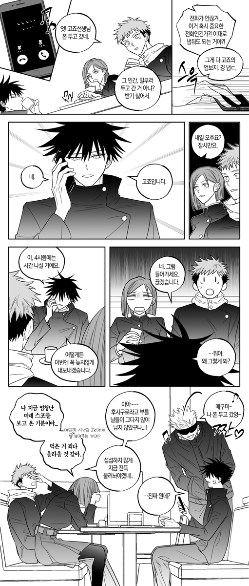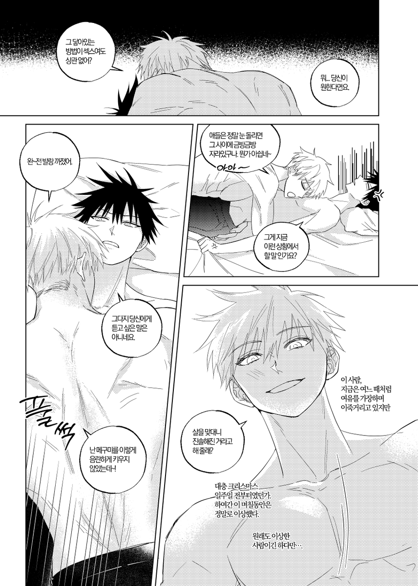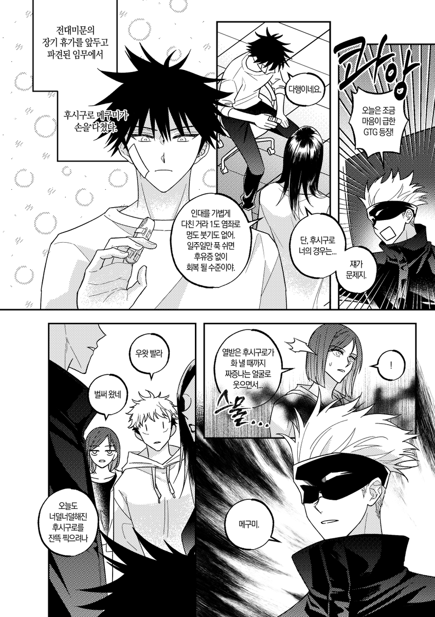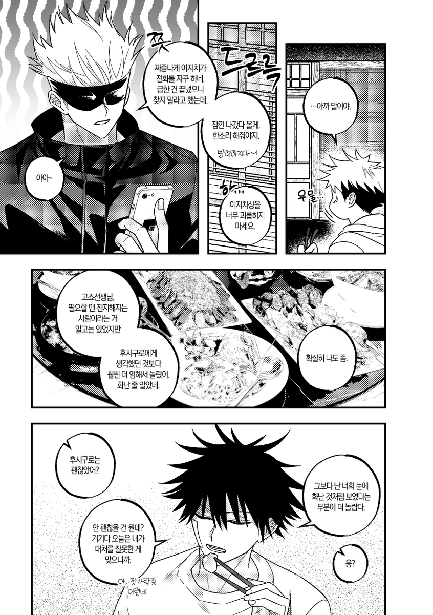 고죠후시 리퀘낛..~ 첫번째는 여름밤 두번째는 메구미랑 처음이라서 긴장하는 사토루..였습니다 너무 제멋대로 그려서 지송혀요