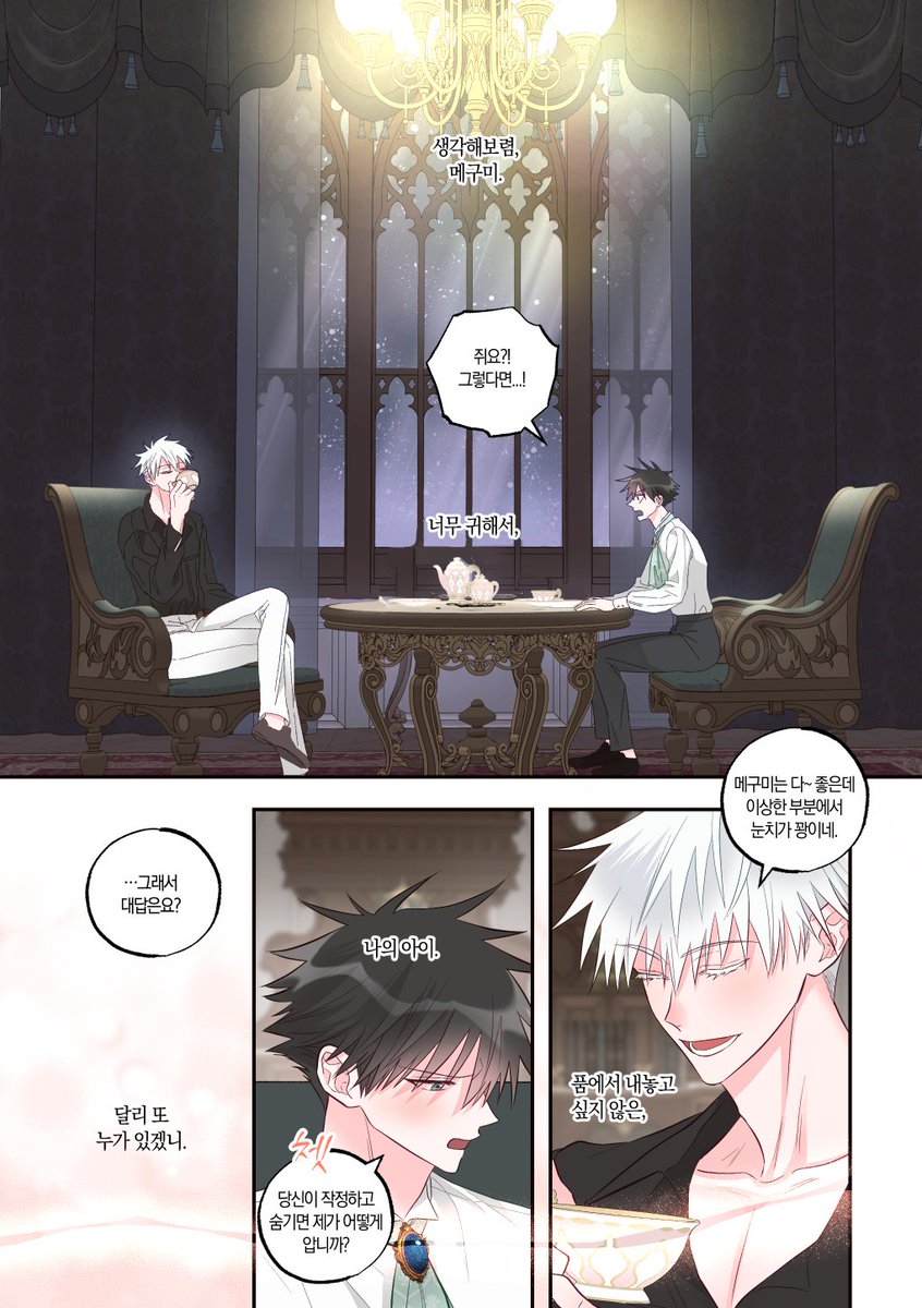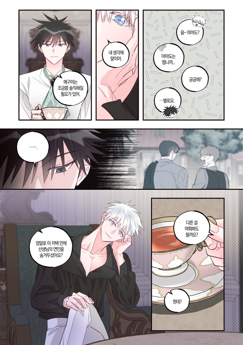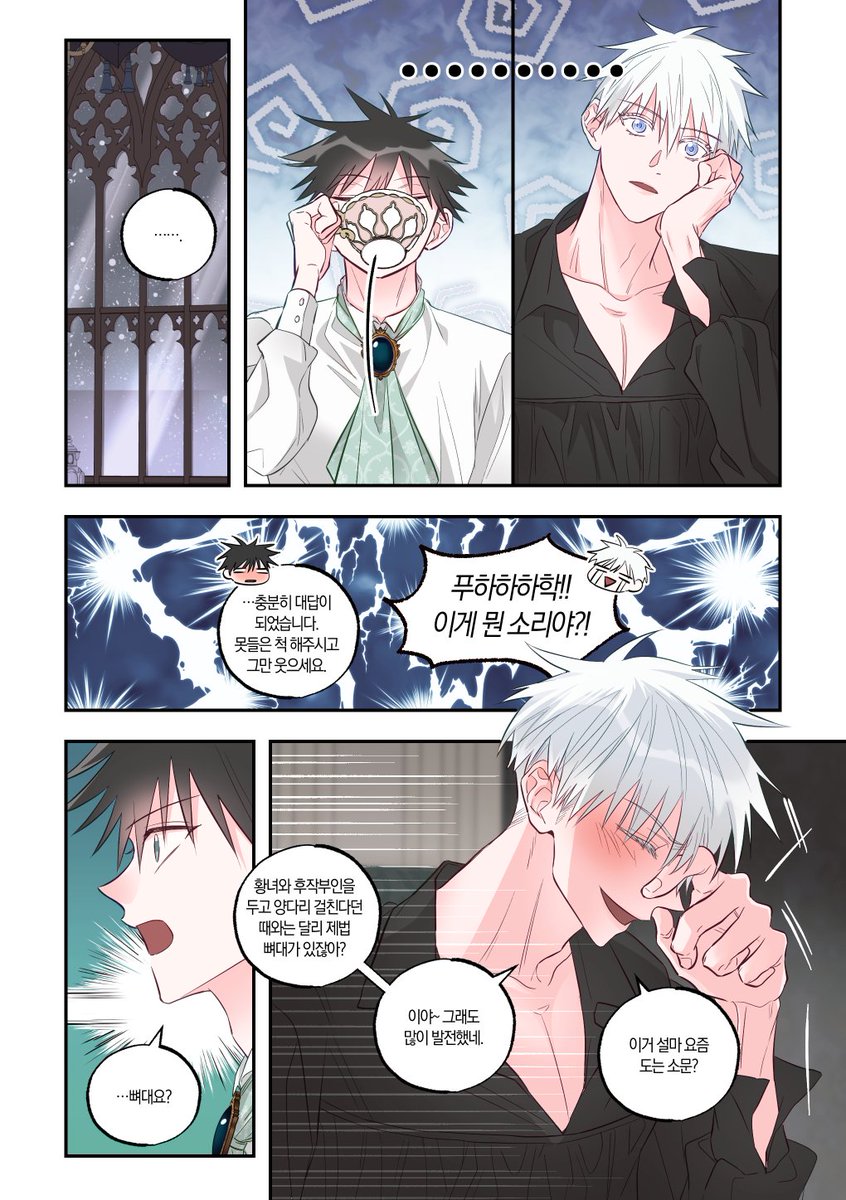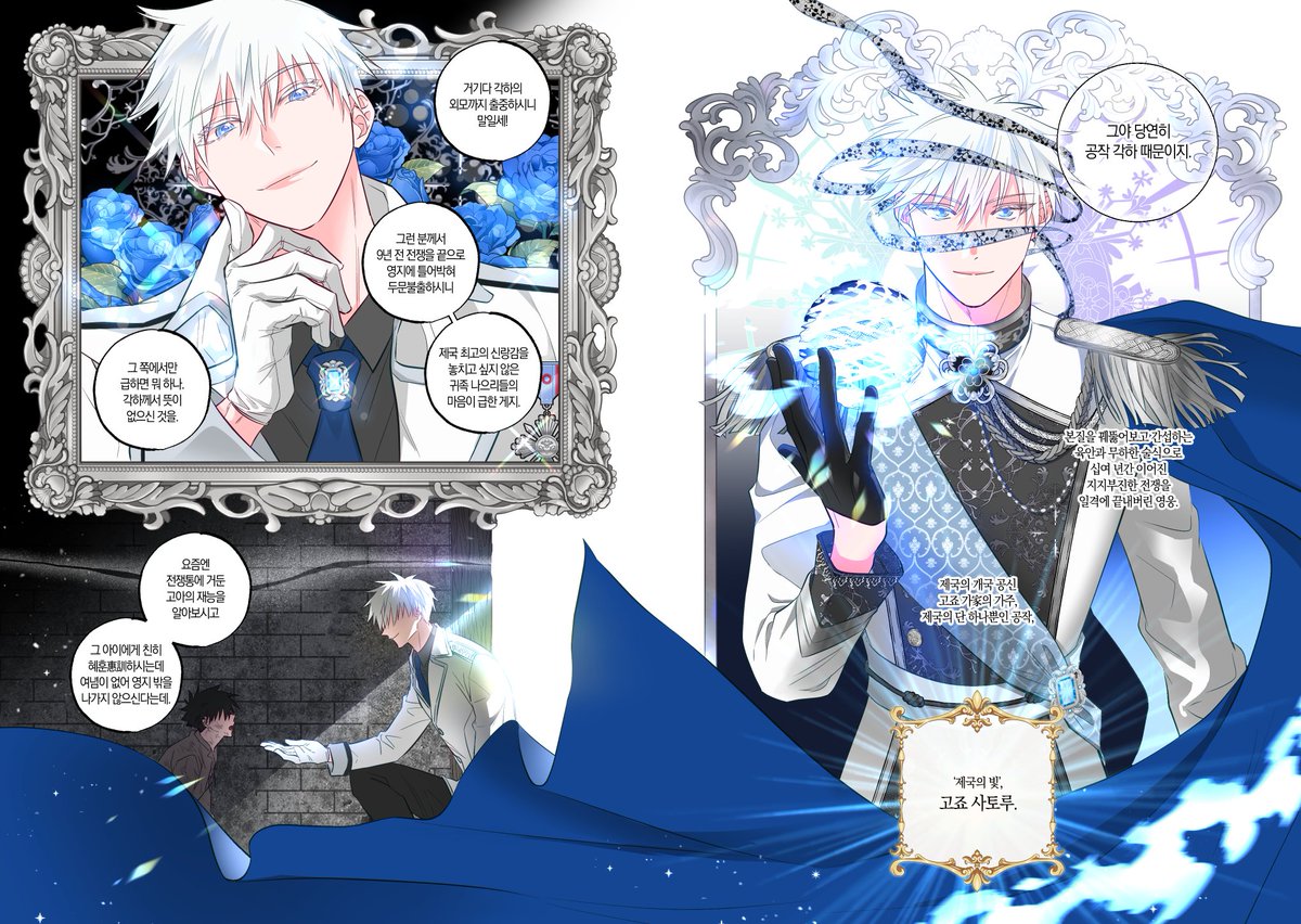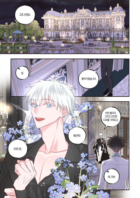 388 1088 고죠 생일 기념 올 여름쯤에 작업했었던 고죠후시 로판au 만화 공개합니다🥳 읽는 방향: 오→왼 (1/3) 22/12/07 16:55