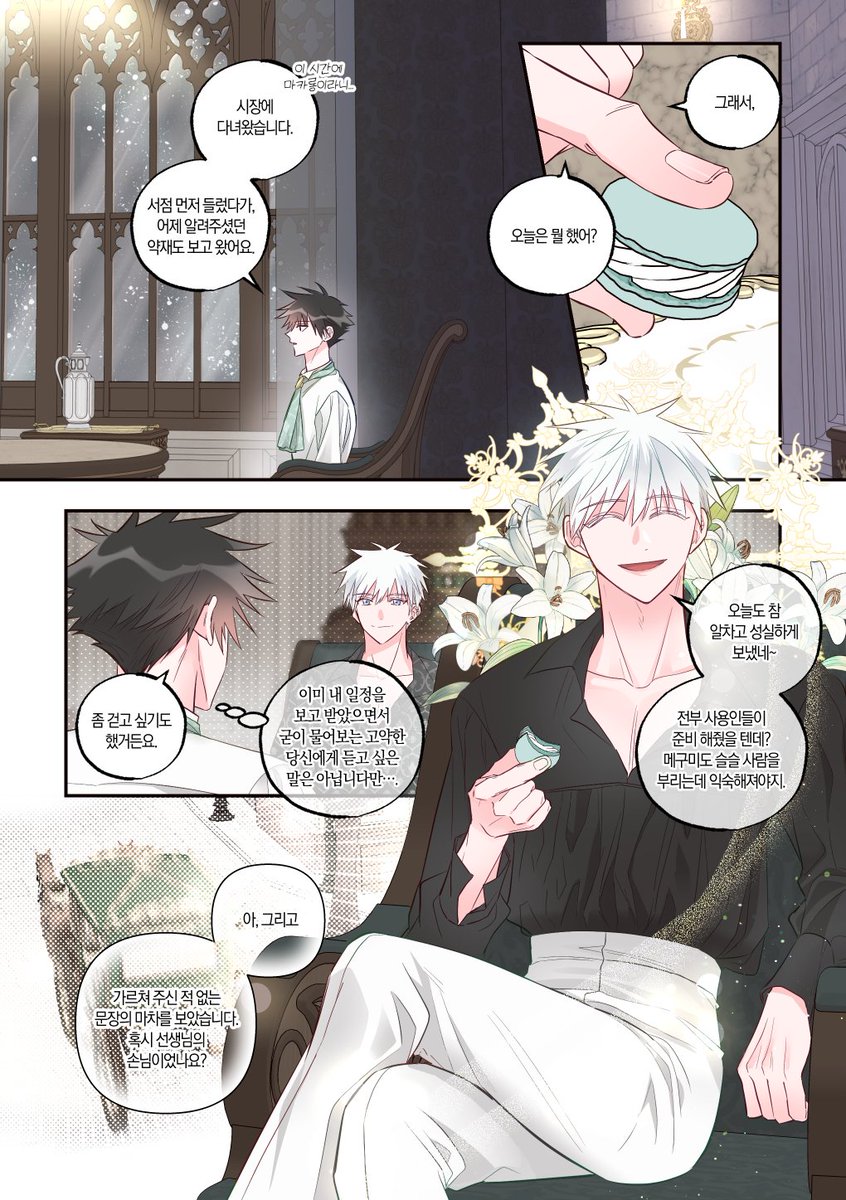 고죠 생일 기념 올 여름쯤에 작업했었던 고죠후시 로판au 만화 공개합니다🥳 읽는 방향: 오→왼 (1/3)
