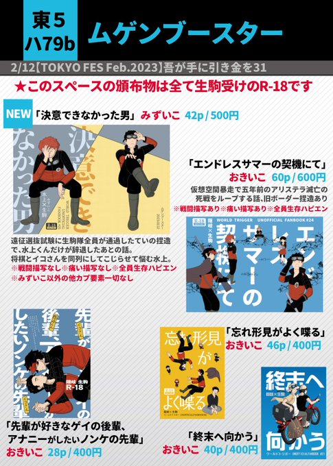 2/12吾が手のお品がきです🥳みずいこの新刊があります🥳✨ ◆お品がき⇒pixiv.net/artworks/10519… ◆新刊サンプル⇒pixiv.net/artworks/10518… 変更間に合わずおきいこスペですおきいこの既刊もあります! どうぞよろしくお願いします~!!