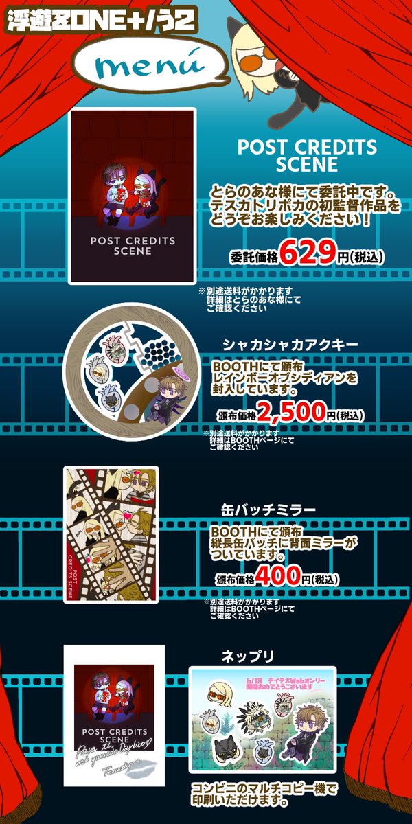 #DTWEBオンリー 改めてお品書きupdate版です🐆 新刊は予約受付中 グッズは10:00よりBOOTHにて頒布開始 ネップリ番号は会場もしくは00:00にこちらのツリーにぶら下げます 当日は10:00よりエアスケブも受付予定です!Twitterにて告知しますので、お時間合う方は是非〜 よろしくお願いします😘