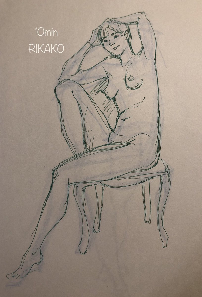 【6/10のクロッキー】 20分、10分、5分 どのポーズにも角度のついたひねりがあり、まとめきれなくて苦戦。 描けたのとそうでないのの落差がひどかった💦 5分のラスト(3枚目)でやっと気分の良い線が引けた #クロッキー #デッサン #色鉛筆 #ゲルインクボールペン #JPAL #日本出版美術家連盟 #銀座