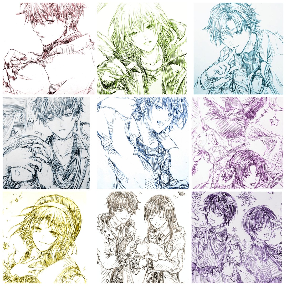 #今月描いた絵を晒そう 奇数だとレイアウトが難しい😅 今月はちょっと少な目でしたね…ゲームが忙しすぎた