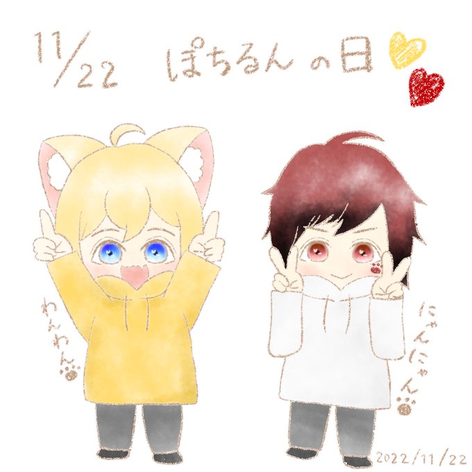 11/22 わんわんにゃんにゃんの日 ぽちるんの日 ぽちるんしか勝たん💛❤️🐾 #ぽちいぬおすわり #ぽちっとあーと #話聞けよ社畜 #あーるんのいらしゅと #ぷりだぁと #ぽちるんの日