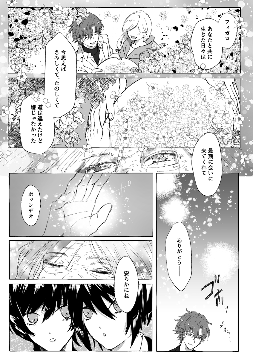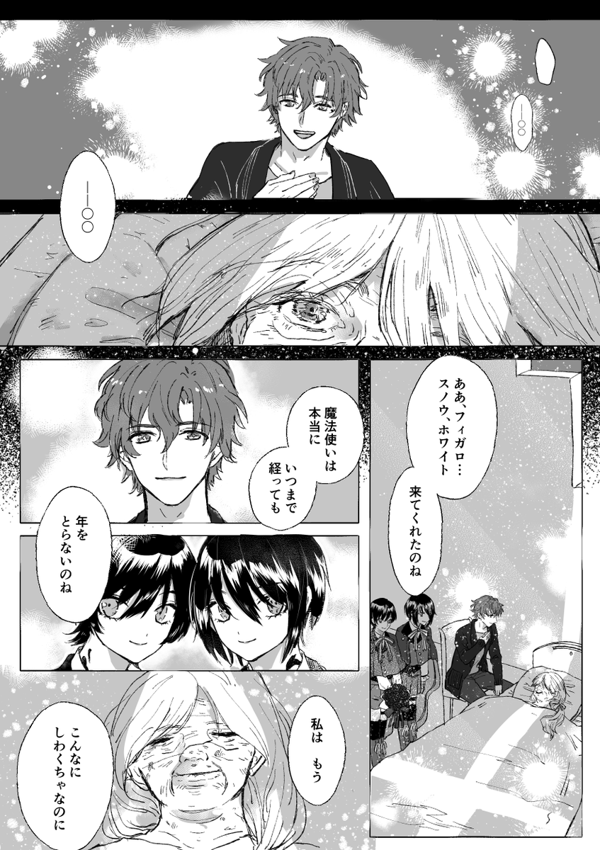 フィガロのやさしさ 1/2 ❗️注目❗️👉※晶じゃない、捏造のフィガロと3年結婚して別れた老婆がでてきます 夢だと思う ※タグがわかりませんでしたすみません ※心が広い人むけ ※20章までしか読んでない人が描いてます #まほやく_FA