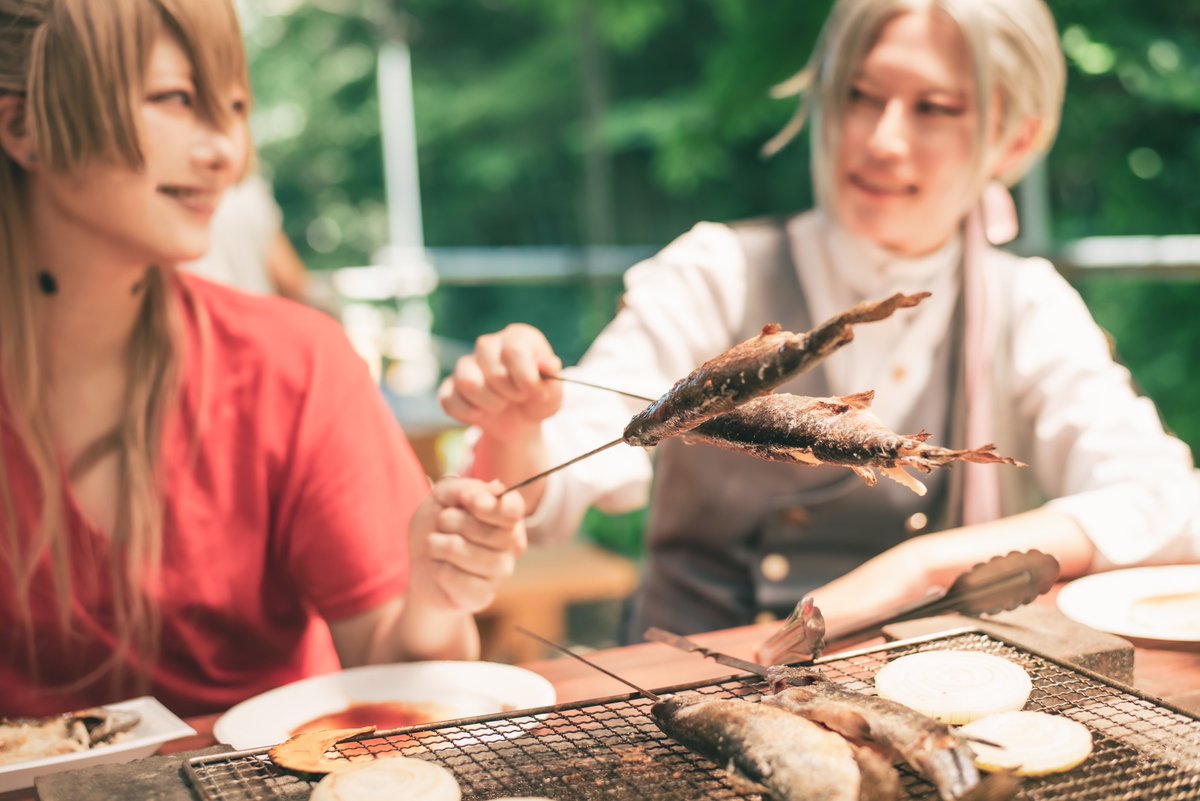 【Cosplay】⚠︎上着OFF 釣った魚でバーベキュー🐟🔥🍴 photoはなさん @hanasan10riesan 大般若 @mts_a_b