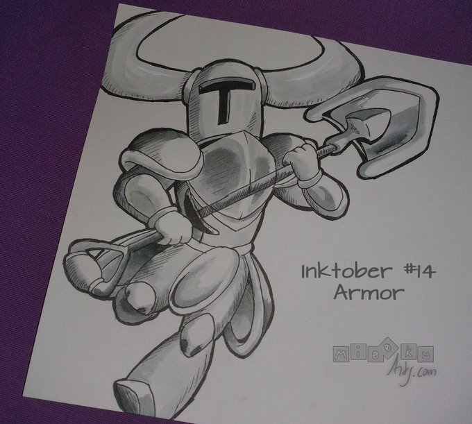 First I was busy, now I am sick... my #Inktober is standing under an ink black star. But well... I try to do a little at least, so here is my Inktober #14 - Armor. As always paired with a video game. This time it's a Shovel Knight fanart. #inktober2020 #shovelknight