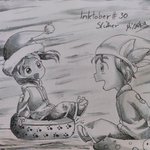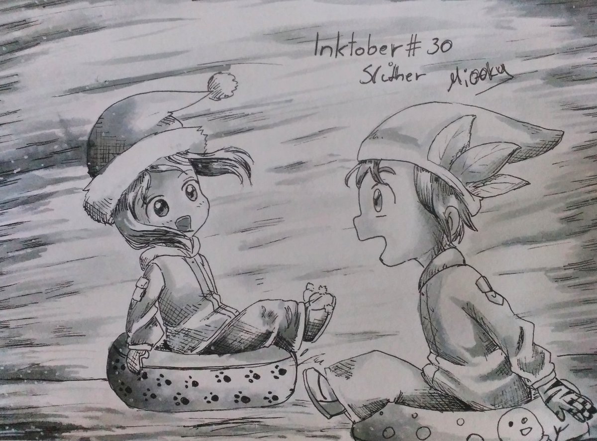 #inktober 30 - Slither These are the Go Vacation Characters from my friend @Sp00byG and me, slithering down the mountain using tires. It was so much fun, more than some of the mini games. 2nd pic shows our ingame characters. #traditionalart #inkdrawing #govacation #fanart