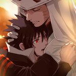 朝起きたら🍥のにやけた顔がドアップでつい天照を発動してしまった🍅。🍥の眉毛が半分くらい燃えてびびったんじゃない🍅が。 🍥(血涙流すほど見たくないのか⁈)