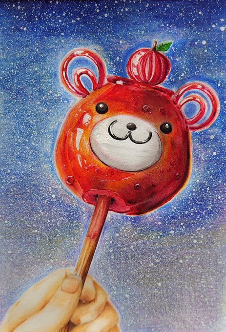 2 36 〜夏の夜空とりんご飴🍎🌌〜 #イラスト #色鉛筆 #アナログ画 #夏祭り #りんご飴 21/08/07 12:06