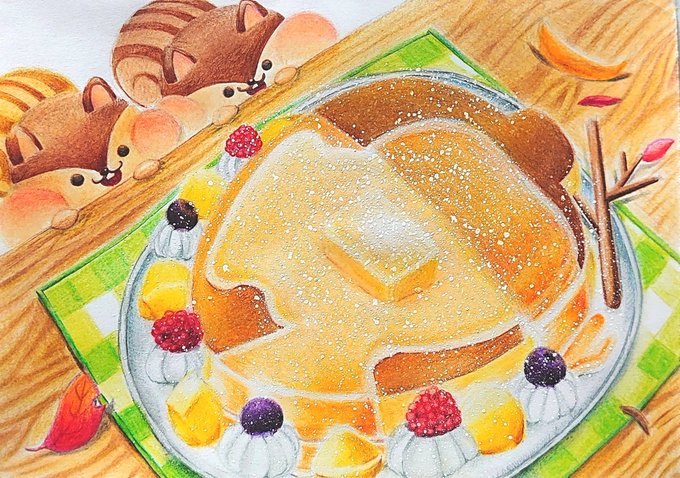 どんぐりパンケーキ🥞🍁 #イラスト #色鉛筆 #パンケーキの日