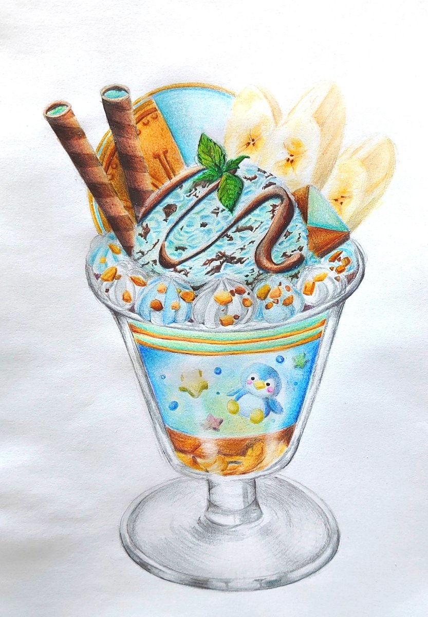 チョコミントパフェ🍨 #チョコミントの日 #イラスト #色鉛筆イラスト #色鉛筆