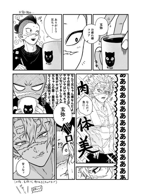 お題 【ココア(の日)】 【いいお腹の日】 お腹というか筋肉というか… 兄貴の半裸に耐性がない玄弥くんを見てスイッチ入っちゃう実弥 #実玄版深夜の真剣60分一本勝負 遅刻&1.5H超えました😢スミマセン…