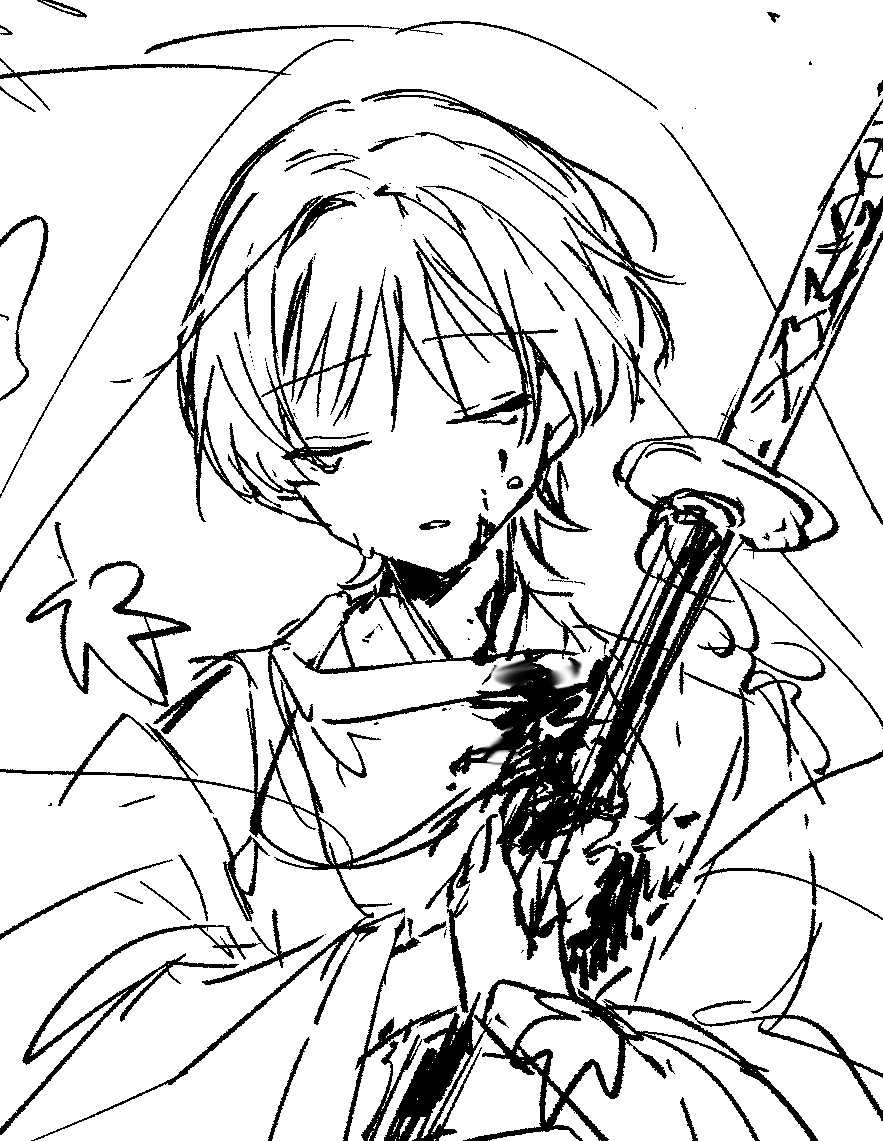 描きたいとこだけ描いた刀すっぽ抜けからのキャッチ ちょっと血