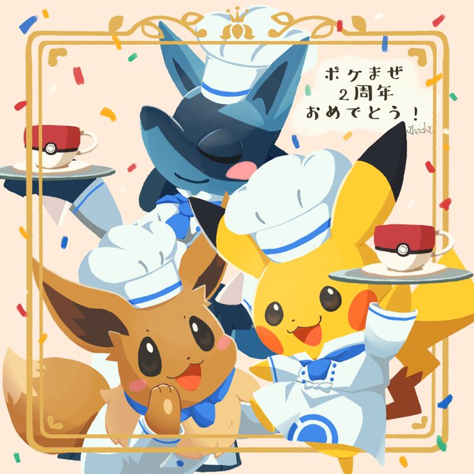 234 1213 6/24に、ポケまぜが2周年を迎えました!めでたい! おめでと絵を描きました🥳これからもいっぱい遊びます♡🍅 22/07/12 08:33