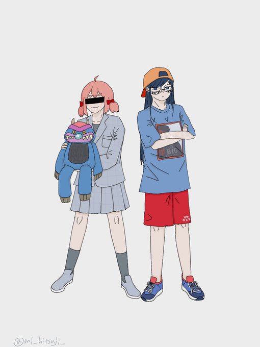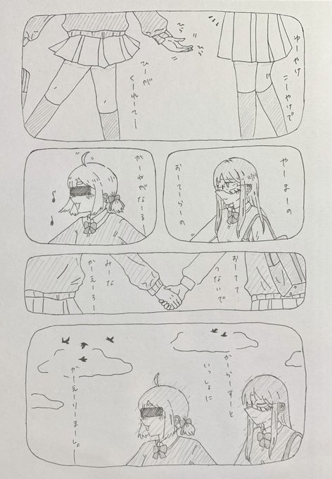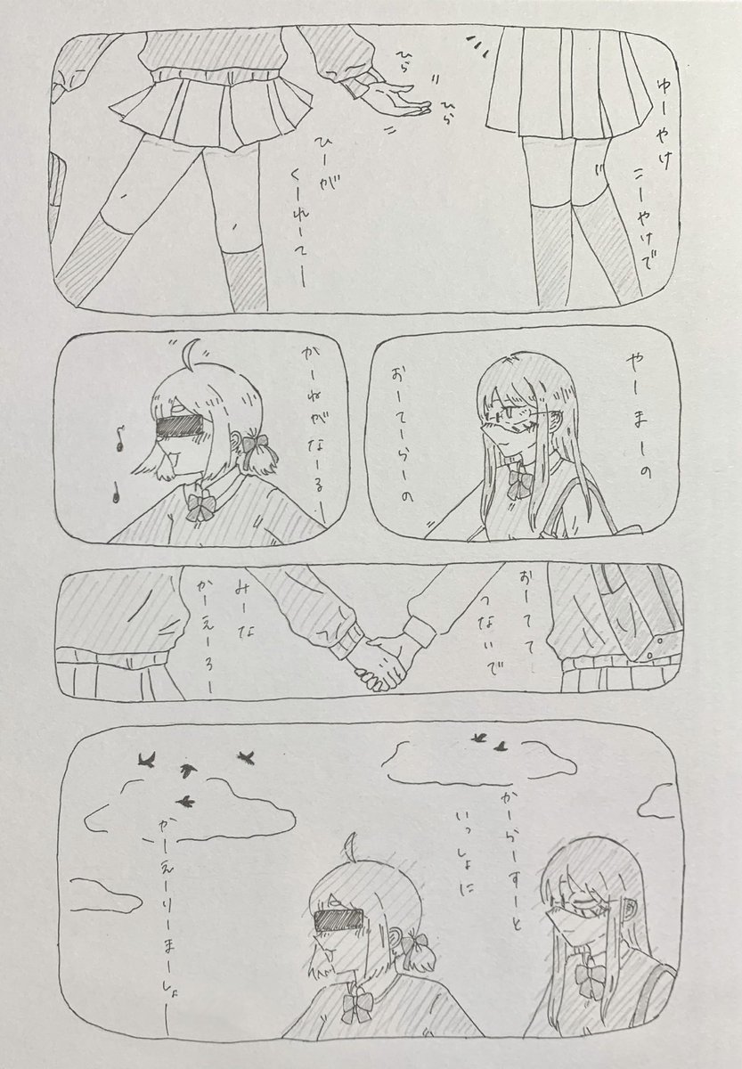 「夕焼け小焼け」を歌いながら帰るARu子ちゃん と、おてて繋いで帰る恐子ちゃん #ARu子アート #恐子アート