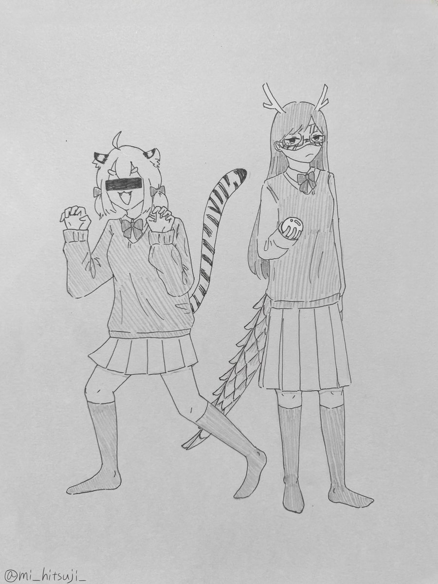 【竜虎】 竜と虎 (とら) 。転じて、力量に優劣をつけがたい二人の英雄や豪傑。 #ARu子アート #恐子アート