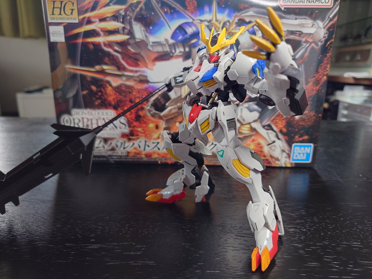 いくぞ…バルバトス… 例のごとく一日仕上げ まあパーツも少なかったし塗りわけも少なかったから楽な方なんかな フレーム剥き出しの無骨な感じ、いいですね #ガンプラ #ガンプラの画像貼るとRTされると聞いて