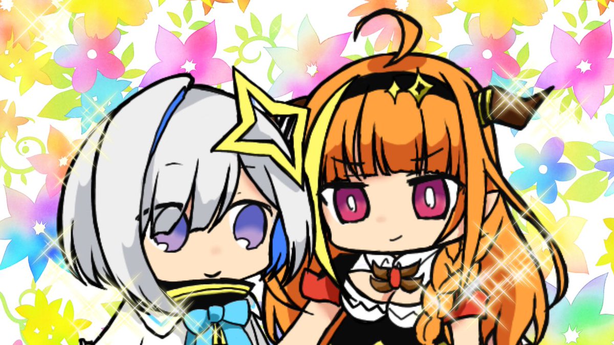 まつもと。さん (@mtmt128341 )ちのプルモちゃん5さい! とミュライナちゃん5さい!です! 手をつないでおさんぽする2人を思い描きました。 おたんじょう日 おめでとう ございます🌸 2022.4.9 #プルモちゃん5さい #プルモちゃん #Punitlium