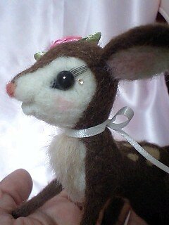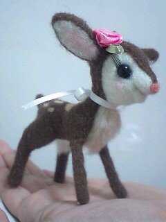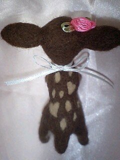 10年前に羊毛フェルトで作ったバンビちゃんの写真が出てきた! 何かのオークションサイトで売った記憶があるんだけど、まだ可愛がって貰えてるといいなぁ😊 チャームポイントは背中の2つの♥と目尻のスワロ、そしてふわっふわの胸毛♥w #羊毛フェルト #羊毛 #バンビ