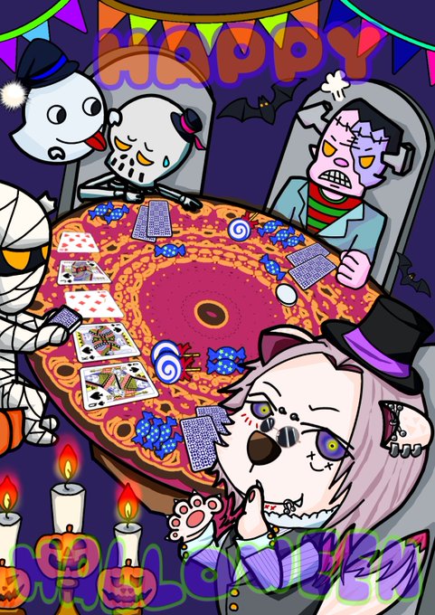 遅刻投稿ですいません😅 ハロウィンイラスト🎃 「ポーカー。果たしてその手札は、、」 #あどあーと