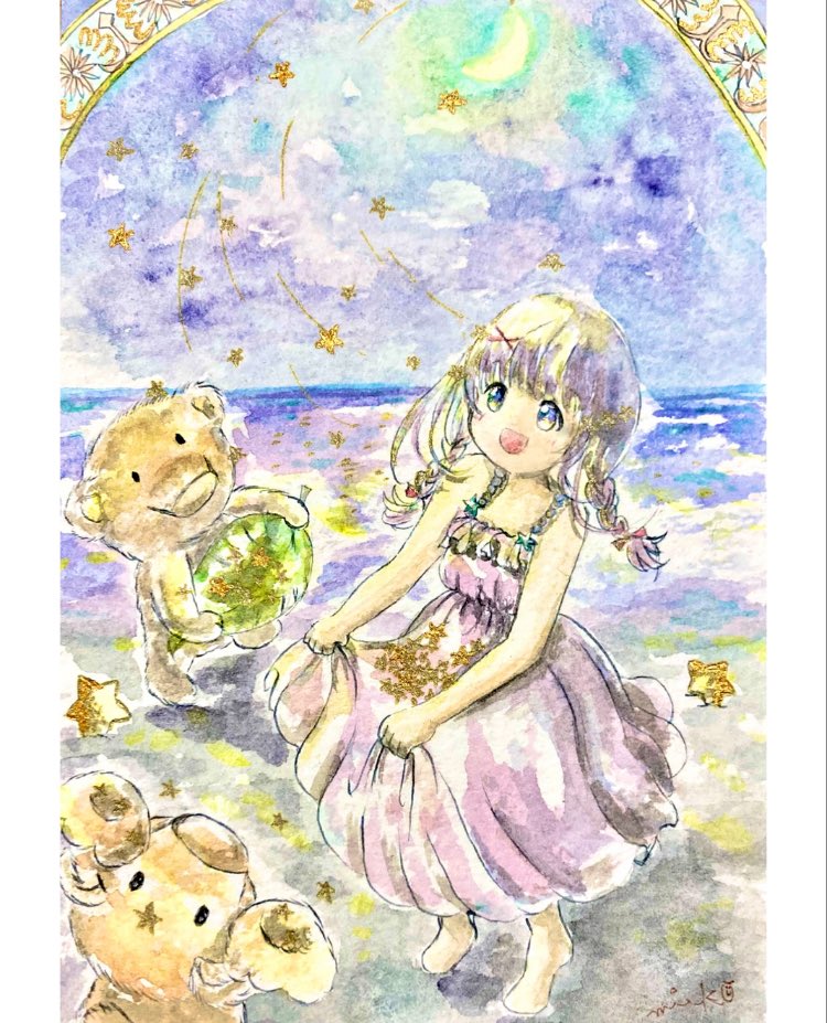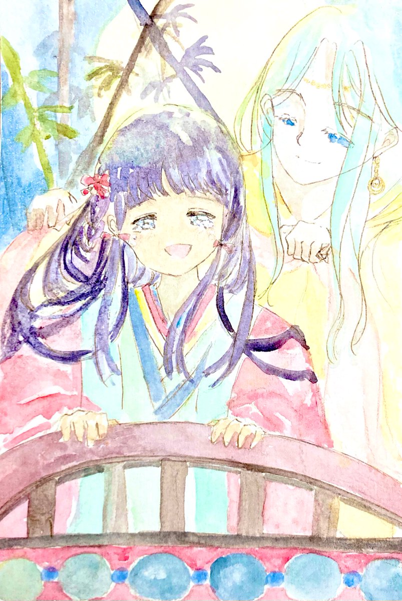 『つきの女神とたいようの女神』 透明感抜群の綺麗な絵が得意な、仲良しのくろのちゃん(@kurono_bb )とアナログ合作第2弾です🥰 今回は本から出てきた2人のかみさまを描きました🌸 ☆人魚の絵(引用)→背景くろのちゃん ☆かみさまの絵→背景わたし ドキドキしたけどすっごく楽しかったです🥰 twitter.com/kurono_bb/stat…