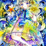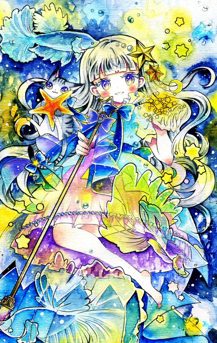 #月と星展 の新作です🌙🌟 流星雨の中ひとり佇むアスティア🌠 原画は星たちがキラキラです✨ 瞳や表情が制作過程でどんどん理想的な雰囲気になって楽しかったです🎨 #イラスト #イラスト好きさんと繋がりたい