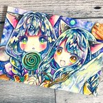 リハビリのハロウィンイラスト。 かぼちゃミイラの女の子です🎃👻🧙♀️ カット後に出た絵の具付きの切れ端に描きました✍️ マルチライナーで線画描いたのは今回が初めてです🌟着色は透明水彩のみ。 初の組み合わせでしたが久しぶりにイラスト描けて楽しかった✨ #イラスト #ハロウィンイラスト