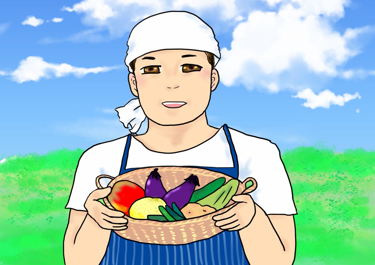 #イラスト #イラスト好きさんと繋がりたい #絵描きさんと繋がりたい #創作イラスト #アイコンイラスト 確かフリー素材のはずなので、載せてもOKかな? 元画像と比べてみた。うーん、難しい・・・。 アイコン添削会に向けて 農家の男性バージョンです。