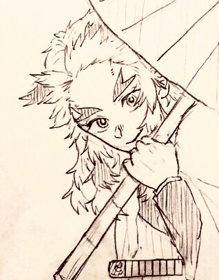 0 9 (ノ)`ω´(ヾ) #鬼滅の刃 #鬼滅の刃イラスト #煉獄さん #煉獄杏寿郎 #シャーペン画 22/07/09 23:16