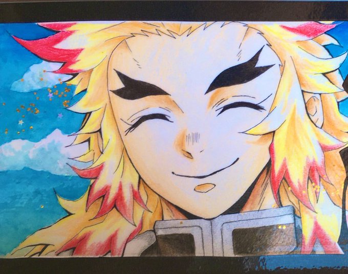 4 61 こんにちは!!🌻 お久しぶりです💦 部活で作りました~ #煉獄杏寿郎 #煉獄さん #鬼滅の刃 #鬼滅の刃イラスト #色鉛筆 #絵の具 #模写 22/06/25 14:59
