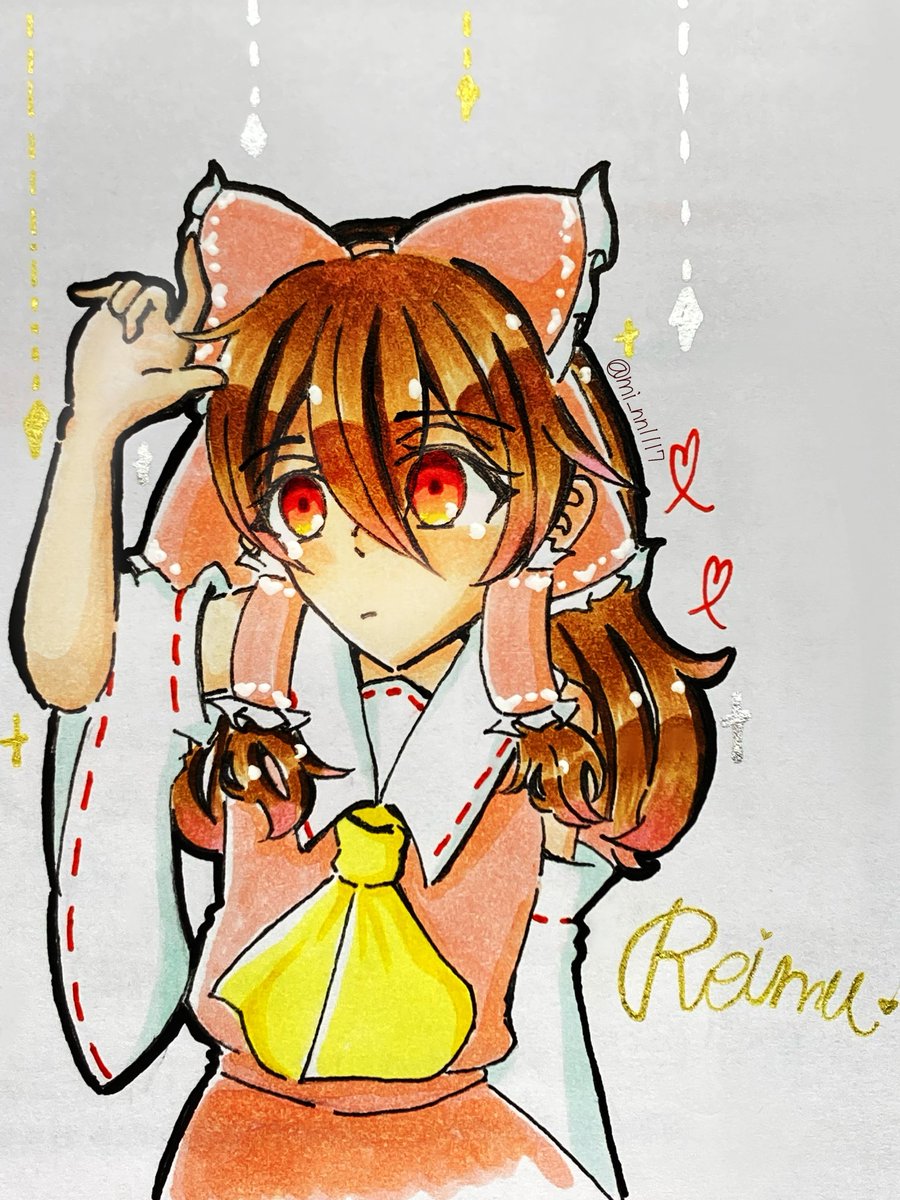 #東方Project #博麗霊夢 #コピック タグがちょっとくどいか...? 久しぶりにコピック触ったけど上手くなった気がする 色が足りなくて服の色薄いです!