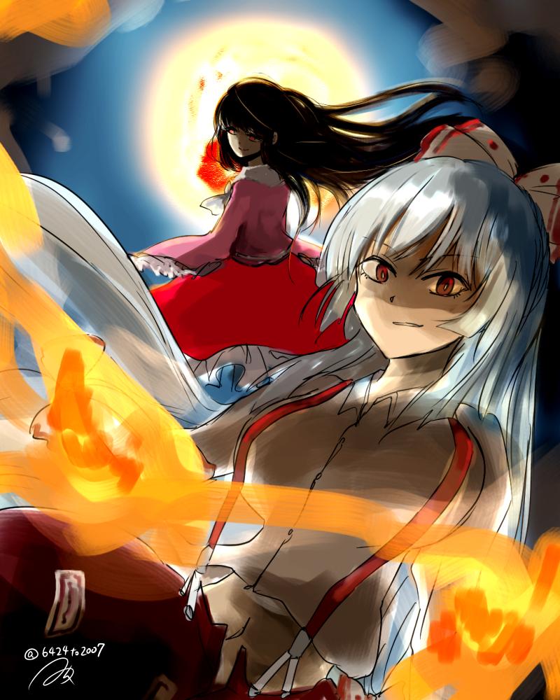 輝夜&妹紅 ワンドロのお題がてるもこと聞いて!!!!! #深夜の真剣お絵描き60分一本勝負 遅刻!!!!!!!