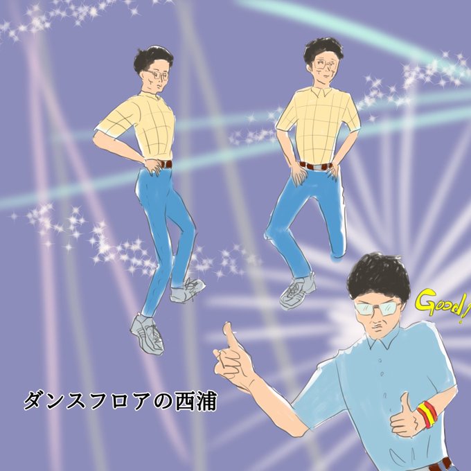 今日は西浦のポーズが際立って良い回だったので、舞台をダンスフロアに移した西浦を描きました。 #舞いあがれ #舞いあがれ絵 #舞いあが絵