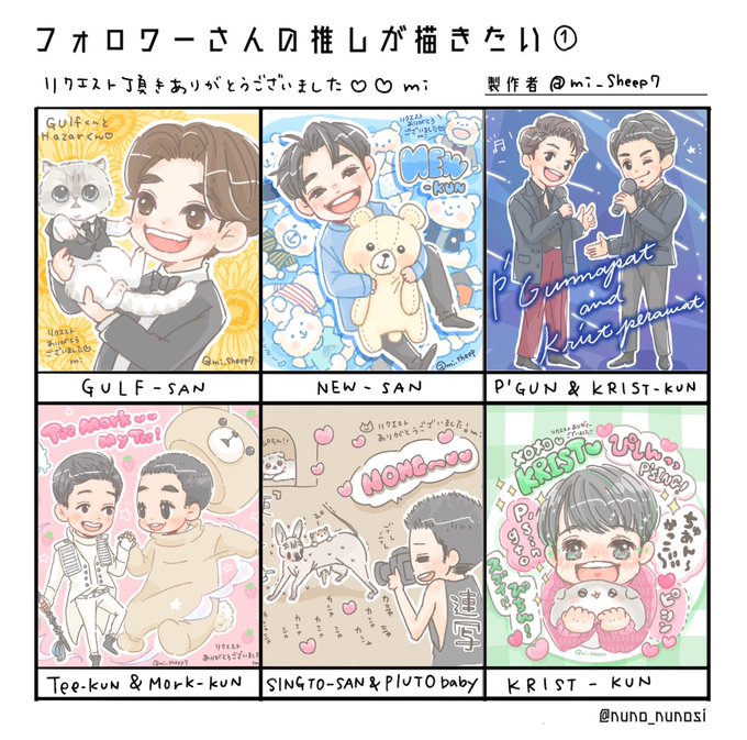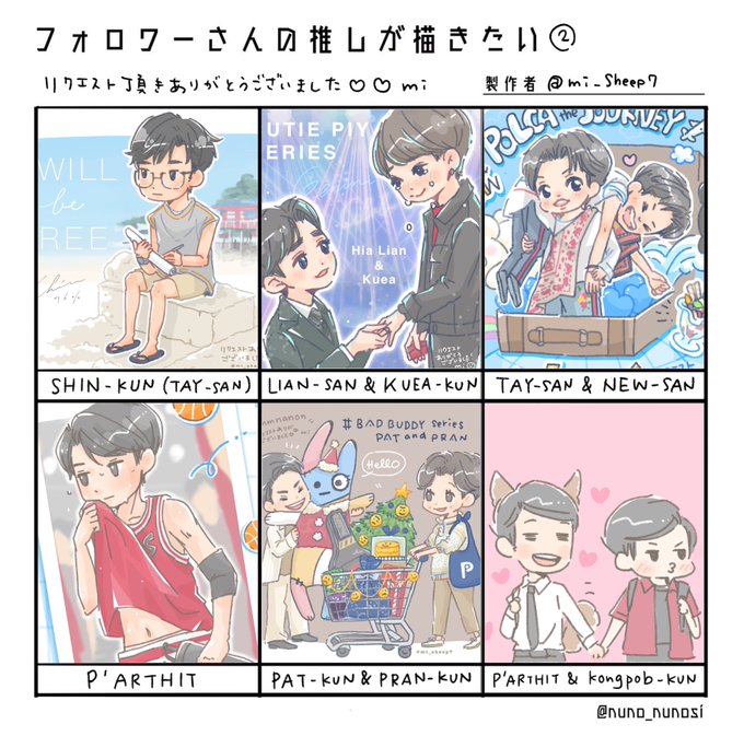 2022年に頂いておりましたリクエスト全て完成しましたー🙌😭遅くなり申し訳ございませんでした!!みなさまの素敵な推しの🇹🇭方々を教え頂いき描く機会をありがとうございました🥺❤️とっても楽しかったです!!① #フォロワーさんの推しが描きたい