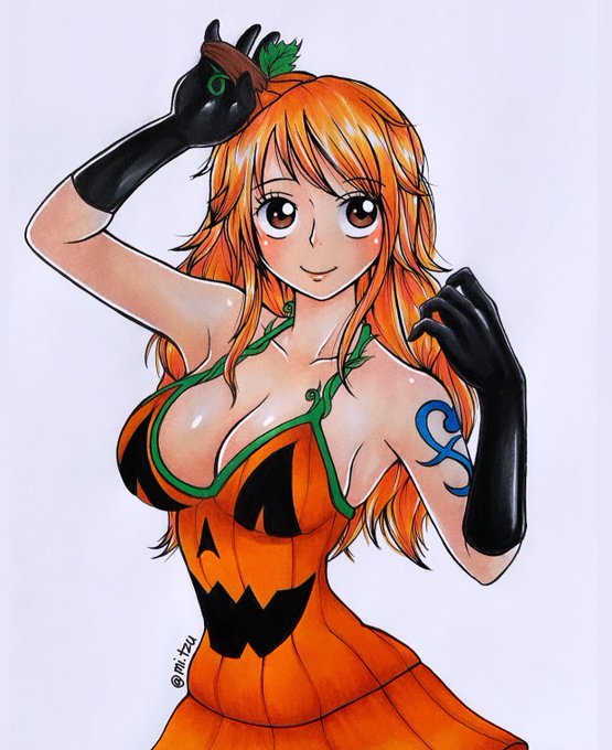 Halloween series starts now! Nami is a pumpkin this year 🎃🧡 Hope you all like it ! #nami #onepiecefanart #OnePiece #fanart #inktober2020 #drawtober2020 #animegirl #waifu