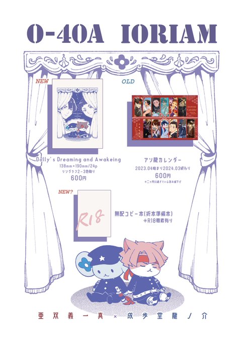 明日のお品書きです。 折本は…間に合わなかったので途中まで描いたものをペーパーにしました😇 新しいものはにゃそちゅ本だけなのでのんびりお越しください〜!
