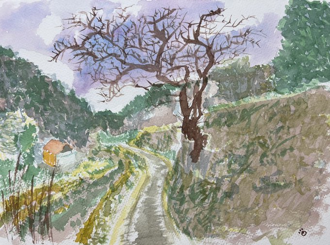 2 21 『小道』 #透明水彩 #水彩画 #絵描きさんと繋がりたい 23/04/30 20:41