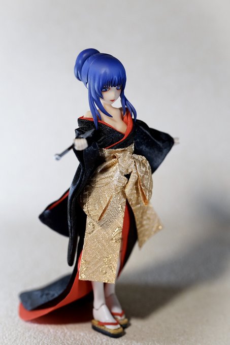 以前購入していた村里屋さん(@ShiketanBuilder)の和服を君主様に着ていただきました^^ 似合う! #メガミデバイス