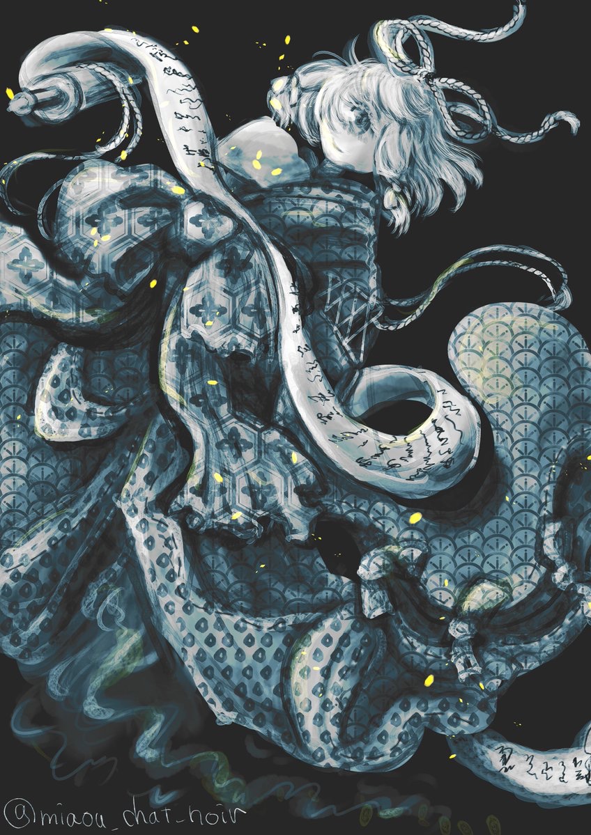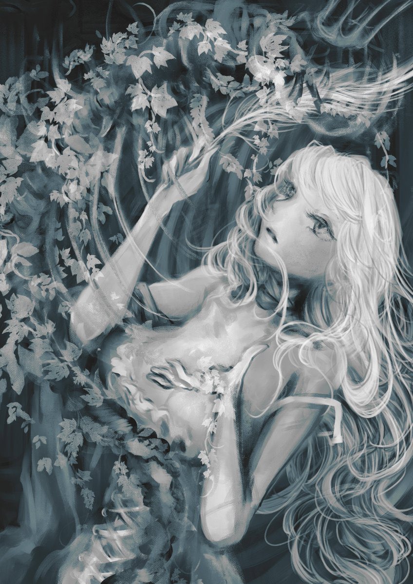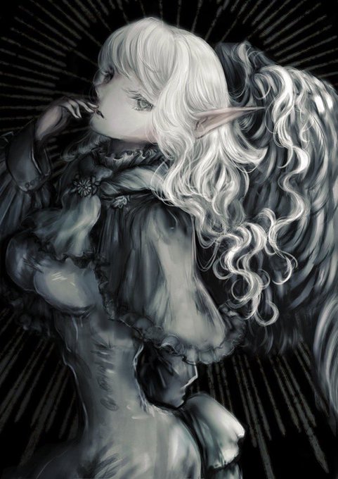 私の羽根は万能の触媒とされた そこに古い獣の骨、蔦と、壊れた機械のかけら あなたを喚び醒ます #オリジナルイラスト #匿れ天使 #HiddenAngel #絵描きさんと繋がりたい #絵柄が好みって人にフォローされたい
