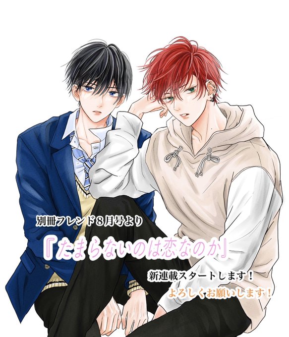 【お知らせ】 本日発売の別冊フレンド7月号に予告載っていますが、来月8月号から『たまらないのは恋なのか』新連載始まります! BLです。 よろしくお願いいたします💕
