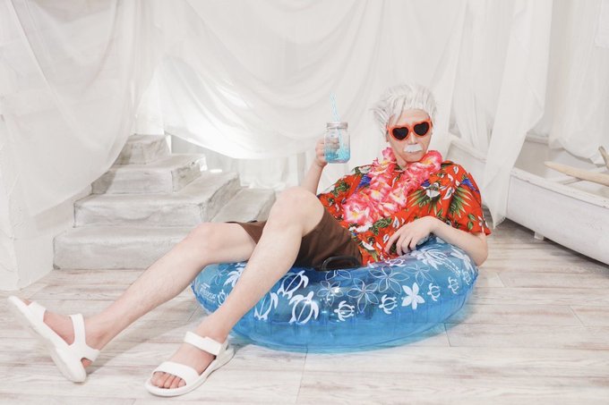 32 131 おそくほー、スタジオで水着新茶の装いでフランちゃんと併せしてきた。これは室内で浮き輪に乗ってはしゃぐアラフィフ 📸シヴァさん(@shivar_cos ) 21/03/21 20:24